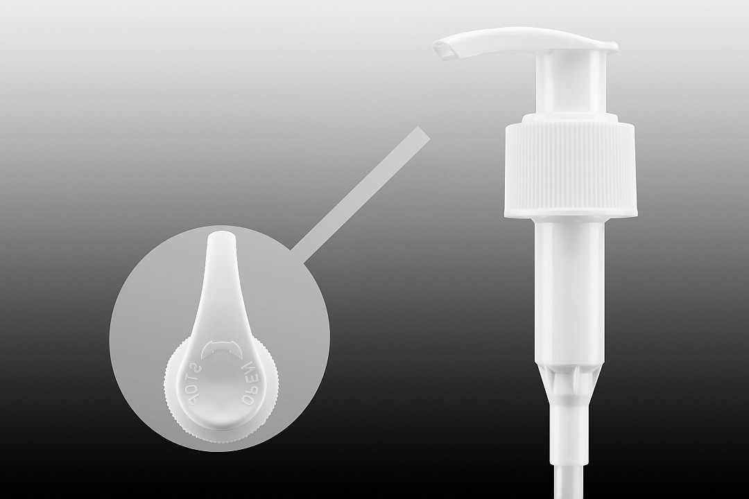 Pompka dozująca 24/410, długość rurki 180 mm, ryflowana, biała, PP