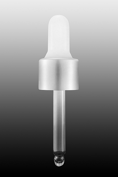 Zakraplacz 18/410, rurka 53 mm, gładki, nakrętka srebrny mat i gruszka biały połysk, PP/Alu i szkło