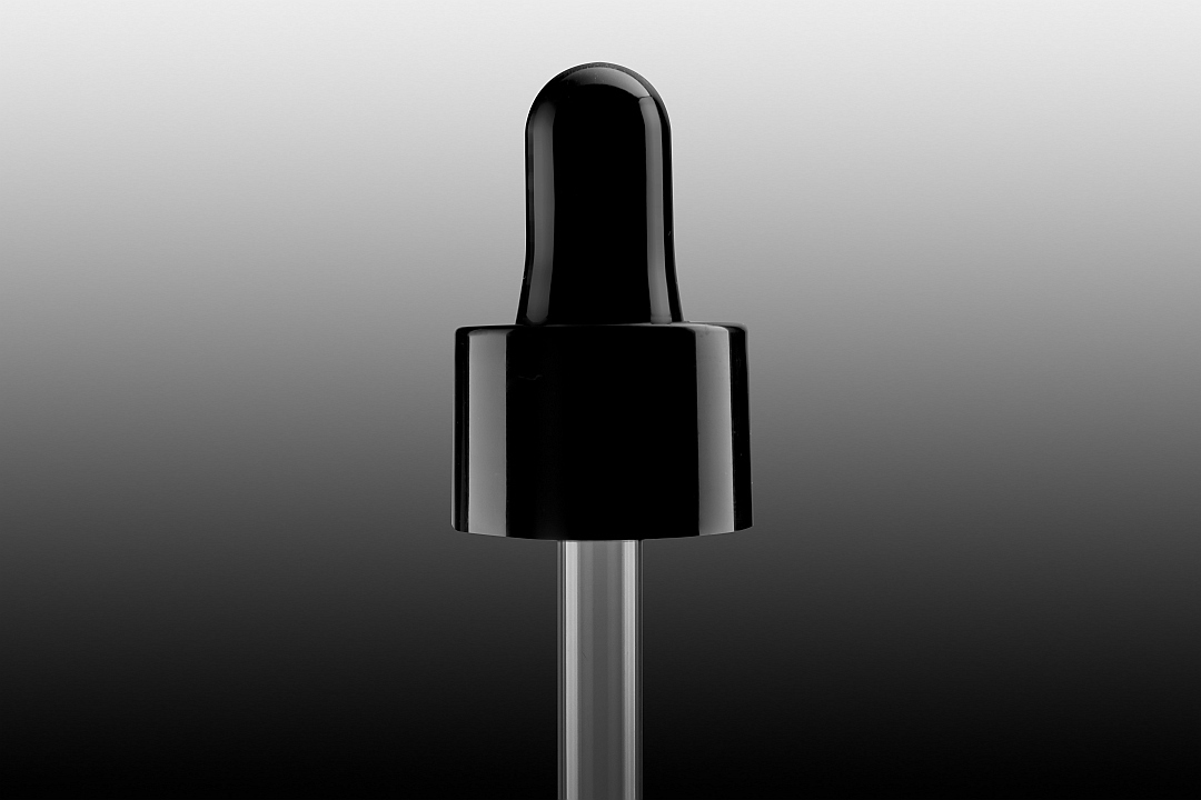 Zakraplacz 20/415, rurka 58 mm, gładki, nakrętka i gruszka czarny połysk, PP i szkło