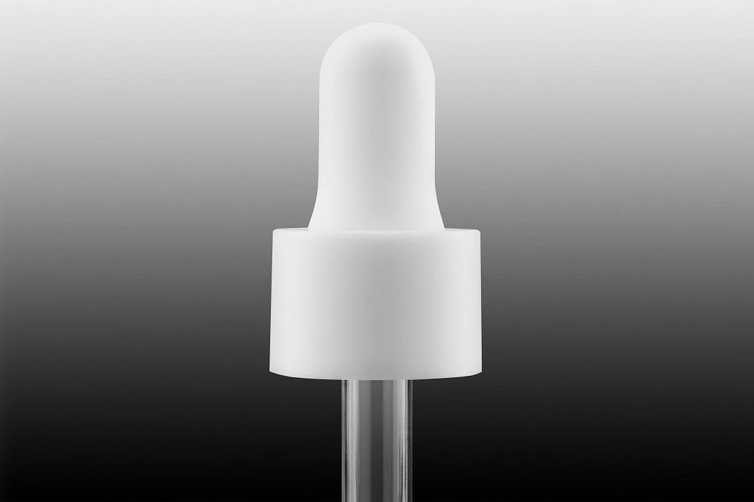 Zakraplacz 18/410, rurka 84 mm, gładki, nakrętka i gruszka biały mat, PP i szkło