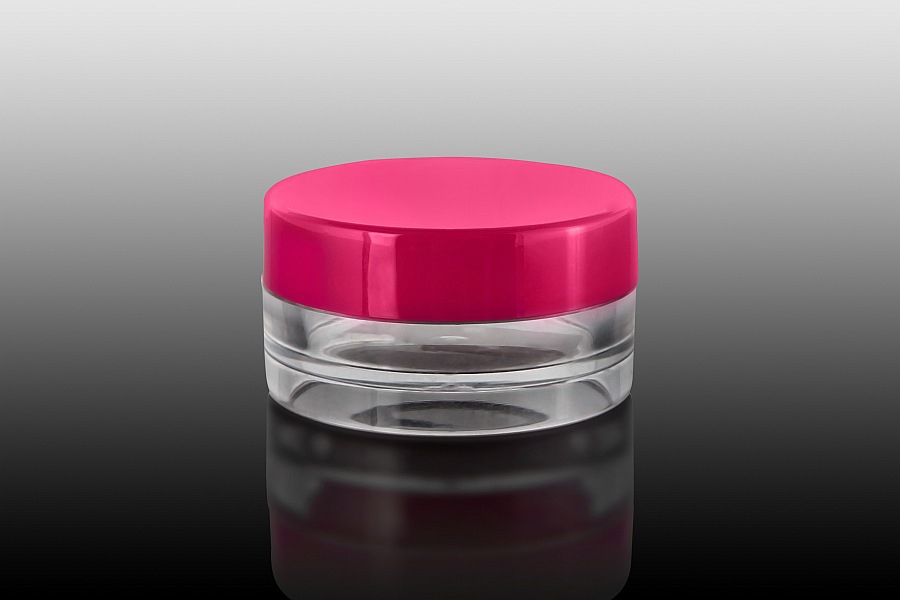 Okrągły słoik 8 ml, baza transparentna, nakrętka różowa, PS