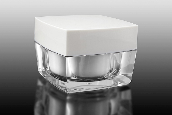 Słoik kwadratowy akrylowy z termosem PP 50 ml, transparentny z białą nakrętką, PMMA i PP