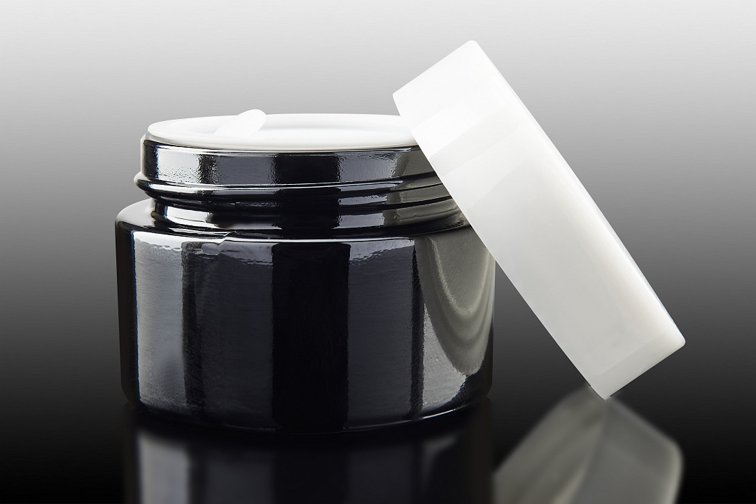 Słoik okrągły szklany 30 ml, ciemny fiolet, biała nakrętka