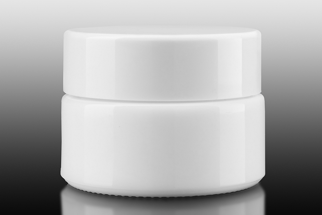 Słoik ze szkła opalowego 15 ml, biały, przekładka biała, nakrętka biała ABS